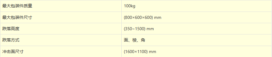 为产品包装后在模拟不同的棱、角、面于不同的高度跌落于地面时的情况,从而了解产品受损情况及评估产品包装组件在跌落时所能承受的堕落高度及耐冲击强度。从而根据产品实际情况及国家标准范围内进行改进、完善包装设计。